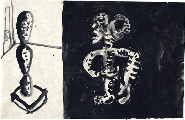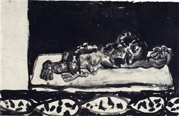 "Das Liegen der Rosi", Tusche auf Flaschenseide